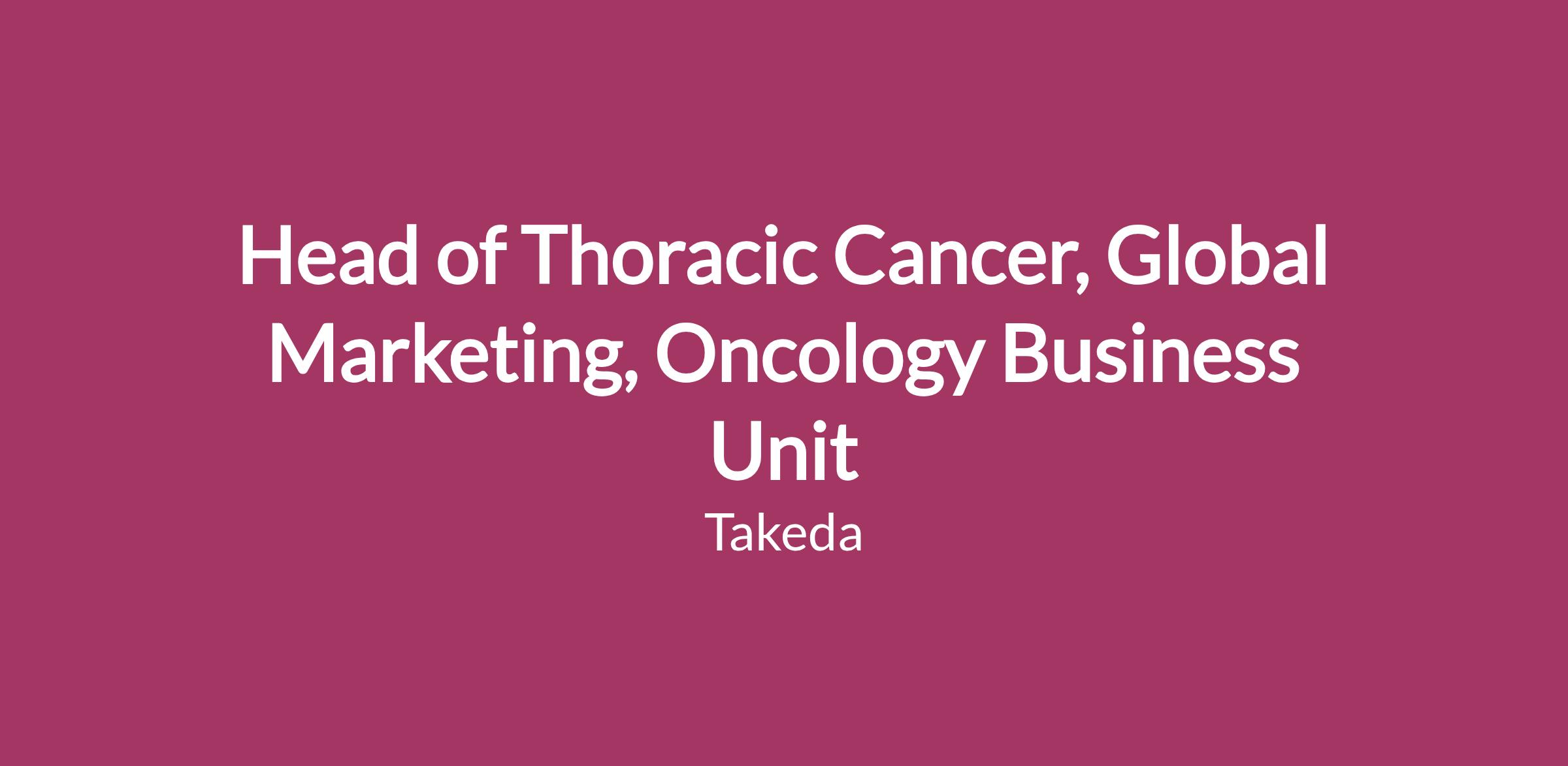 The Head of Thoracic Cancer, Global Marketing (Vice President) will drive global marketing strategy for Takeda’s Thoracic Cancer (NSCLC) asset(s) across the lifecycle, contributing to Oncology’s aspiration to cure cancer.
