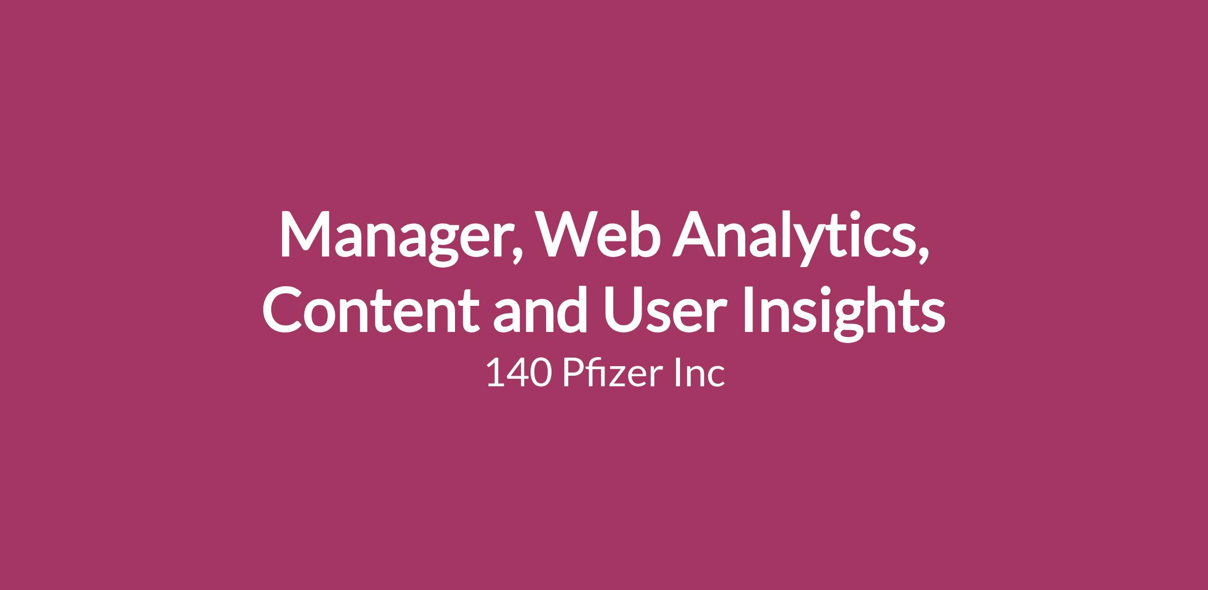 The Manager, Web Analytics, Content and User Insights will play an important role within Pfizer's Media Measurement department. As a Manager within Pfizer's Web Analytics, Content and User Insights team, you will be responsible for leading the strategy and execution of web analytics, content optimization, and campaign analytics initiatives to enhance Pfizer’s digital presence.