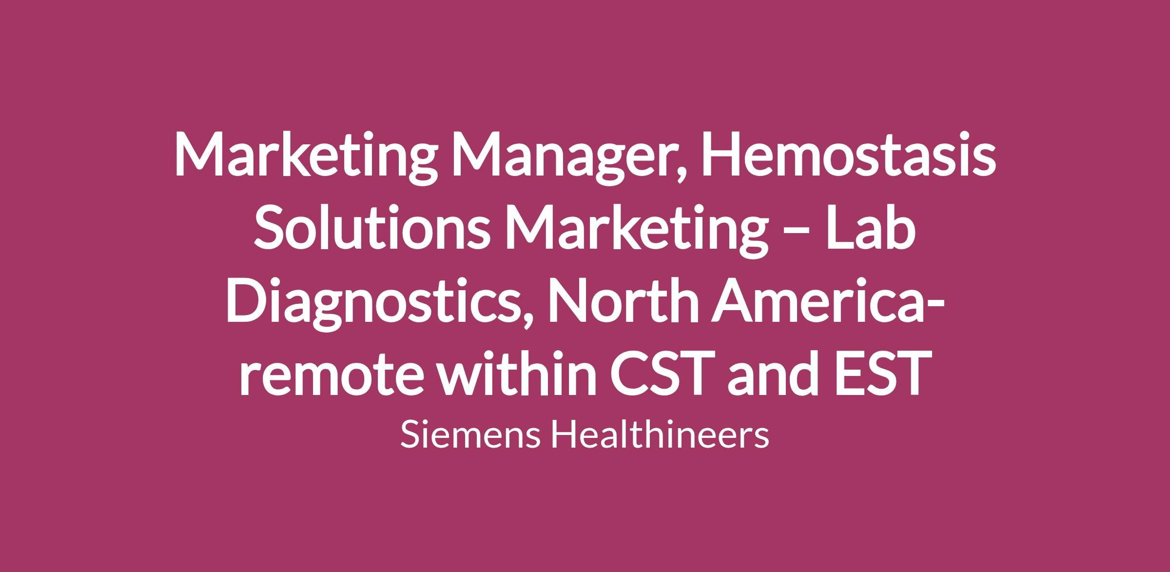 At Siemens Healthineers, your work helps clinicians make critical decisions every day. As the Marketing Manager, Hemostasis Solutions, you will lead North America marketing strategy and commercialization for a growing diagnostics portfolio—driving product positioning, pricing, and go-to-market execution that fuels long-term growth.
