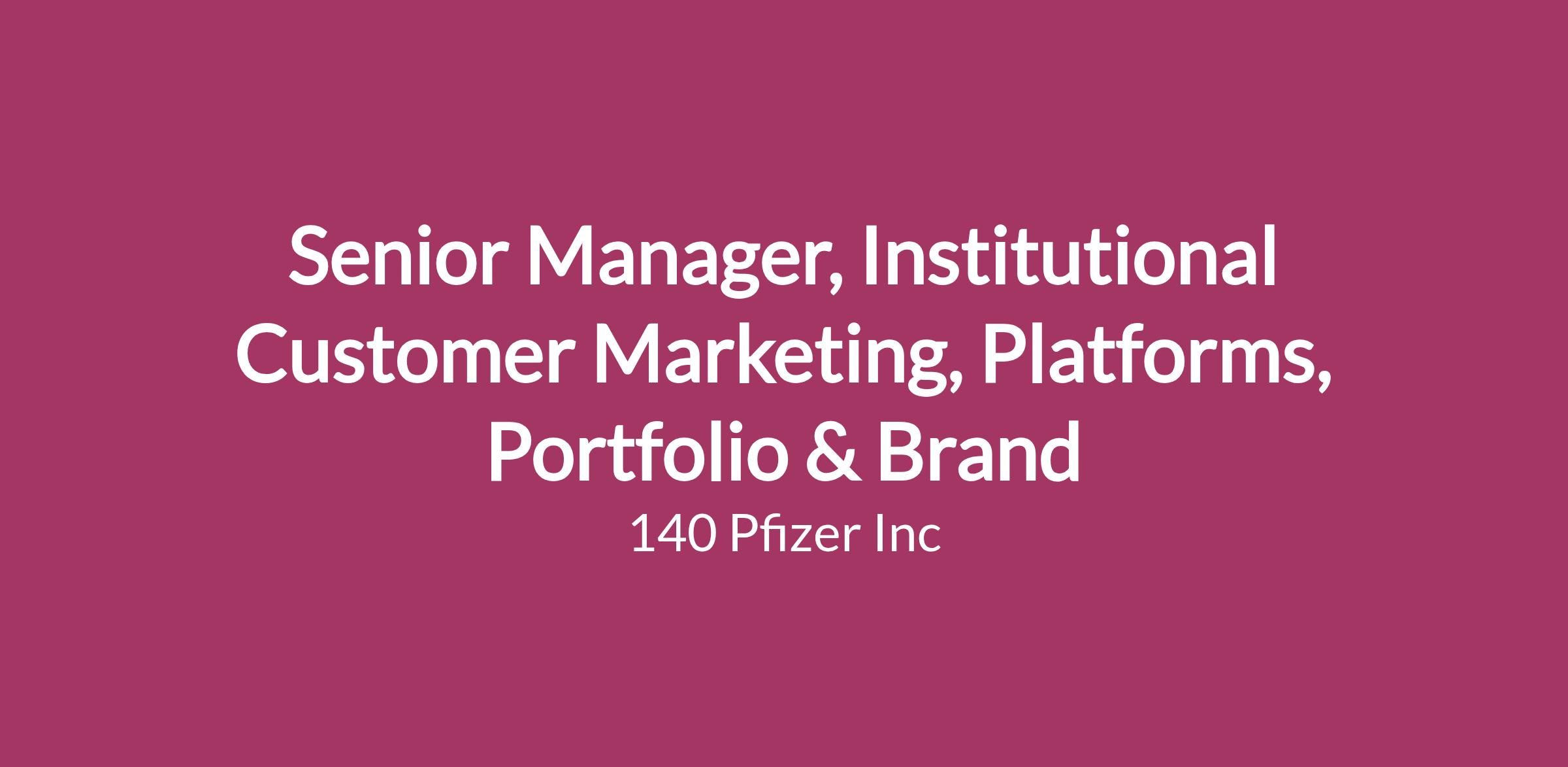 The Senior Manager, Institutional Customer Marketing, Platforms & Brands, reports directly to the Customer Marketing and Communications Lead.