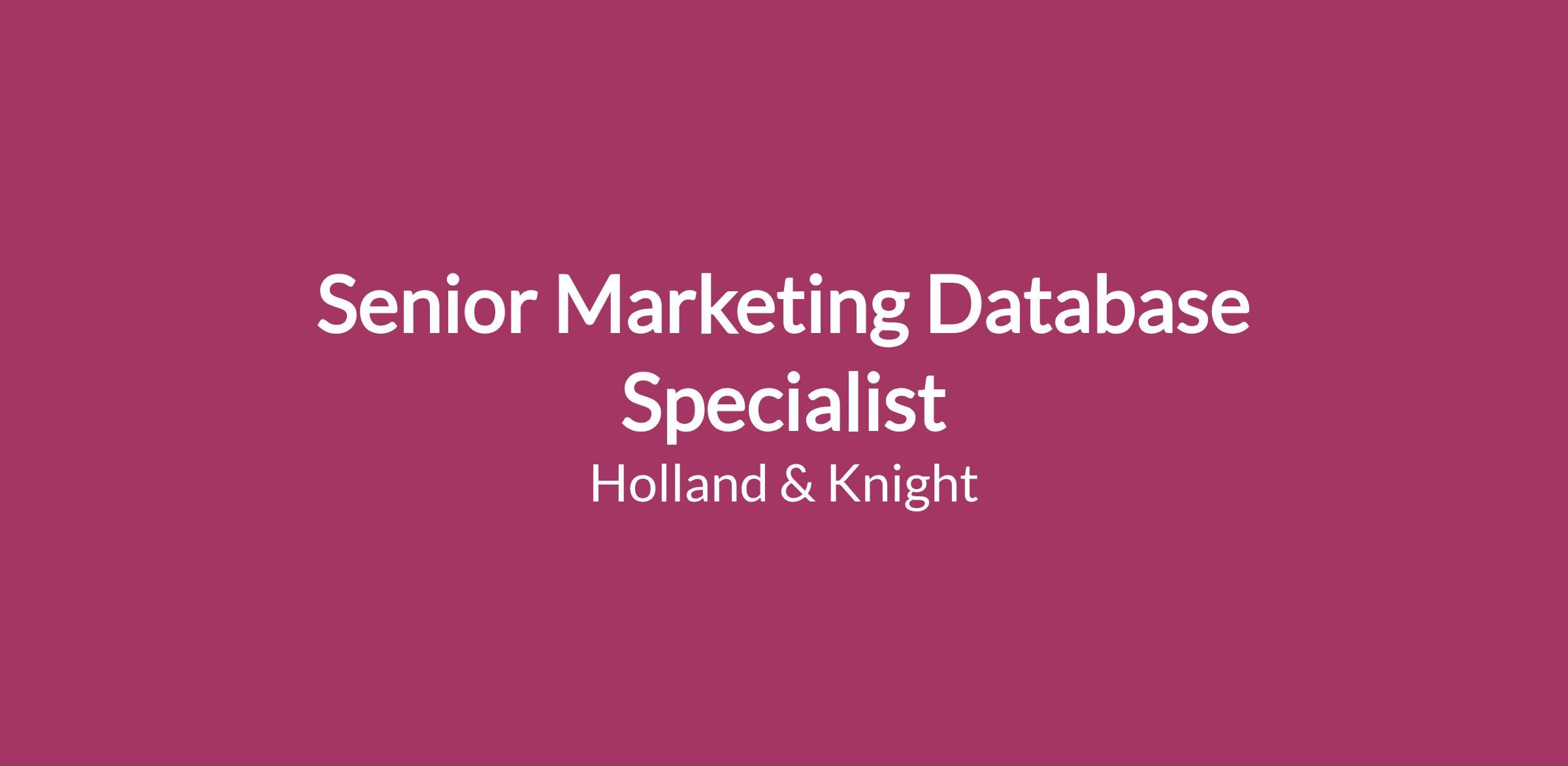 The Senior Marketing Database Specialist is responsible for maintaining the daily processing of the firm’s Marketing Database (InterAction) with a primary focus on maintaining the integrity of the database and Marketing related processes. This position has a visible impact on many marketing and client relationship initiatives throughout the firm by ensuring the accuracy of client and contact data.