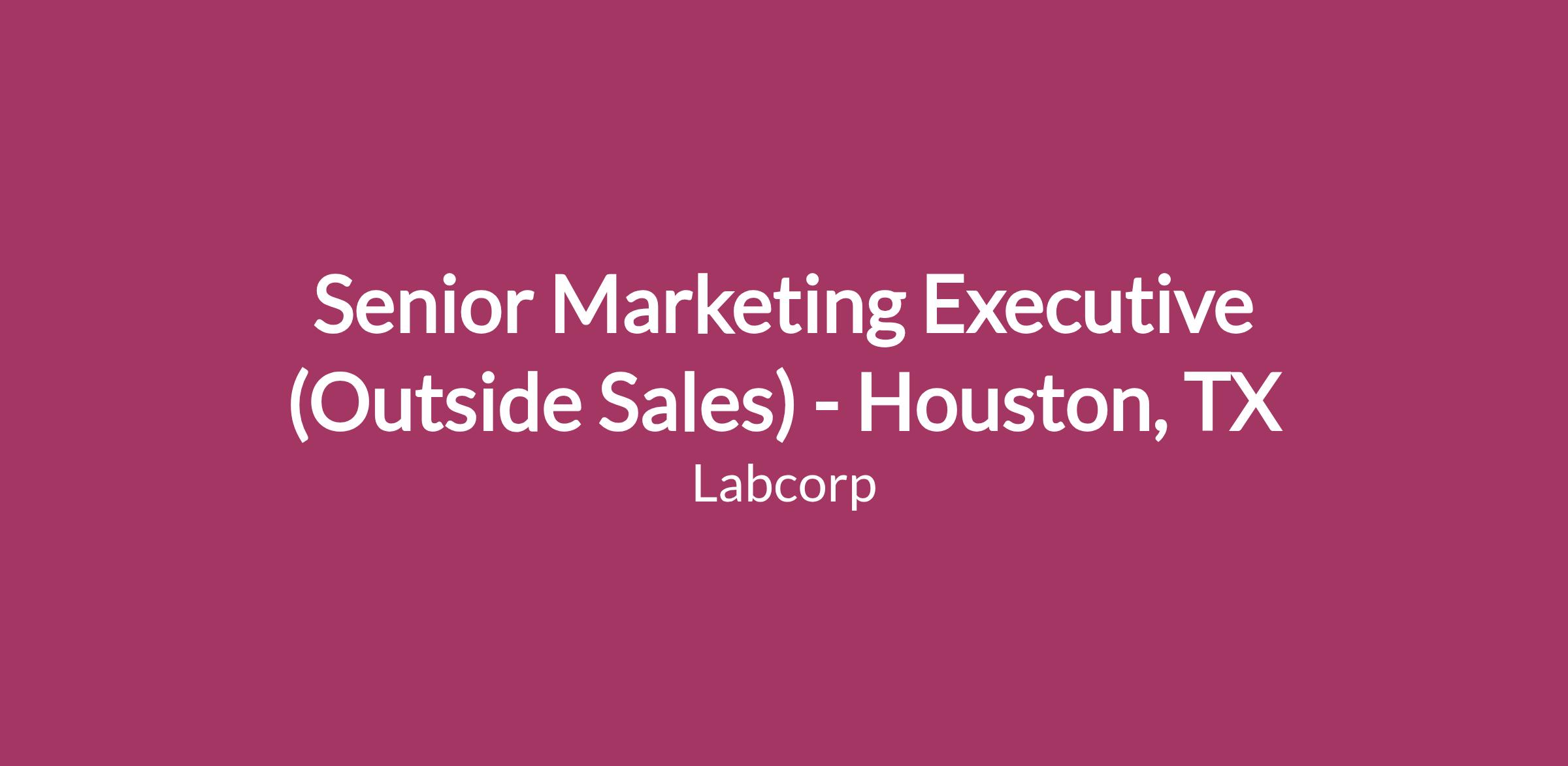 Labcorp is seeking a Specialty Marketing Executive (Outside Sales) to join our team in Houston, TX.