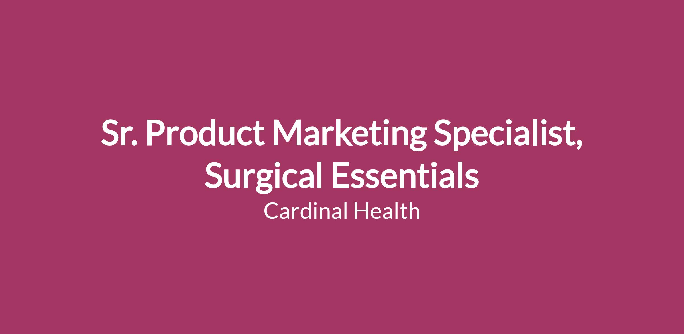 This Sr. Product Marketing Specialist role will have Commercial U.S. (Downstream) and Global Portfolio (Upstream) focus of select product lines under the Cardinal Health Brand Surgical Essentials category.