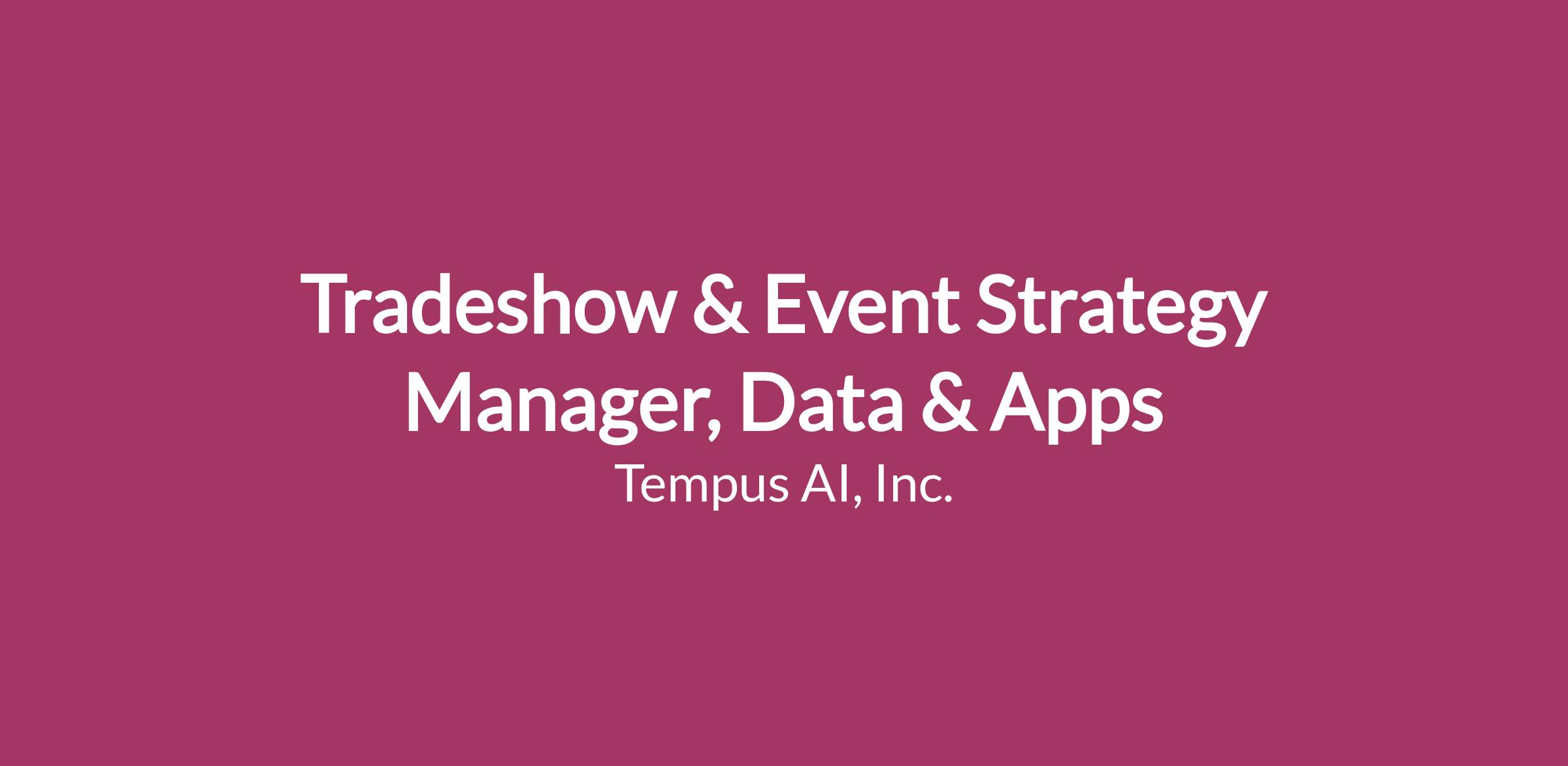 Tradeshow & Event Strategy Manager is a key player on the Data & Apps Marketing team and helps to bring the Tempus brand and brand message to Biotechs and Pharmaceutical companies. Event Marketing programs range in size & scope, from trade show executions to internal corporate events. The Event Marketing team also manages all sales enablement, in addition to the more traditional event management responsibilities.